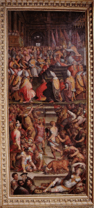 Non ci credete? Guardate allora in Palazzo Vecchio il dipinto del Vasari nella sala di Clemente VII, che rappresenta l’incoronazione di Carlo V. E nel quale si vede in primo piano proprio una vitella arrostita e i militari che si apprestano a mangiarla.