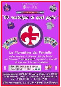 In mostra cimeli e curiosità di quel decennio: figurine, maglie, fotografie, borse, giornali, adesivi, gadget, caricature e tante curiosità. All’inaugurazione è confermata la presenza di Ranieri Pontello e dei Campioni di quegli anni (Galli, Pecci, Galbiati, Di Chiara, Antognoni, Restelli …).